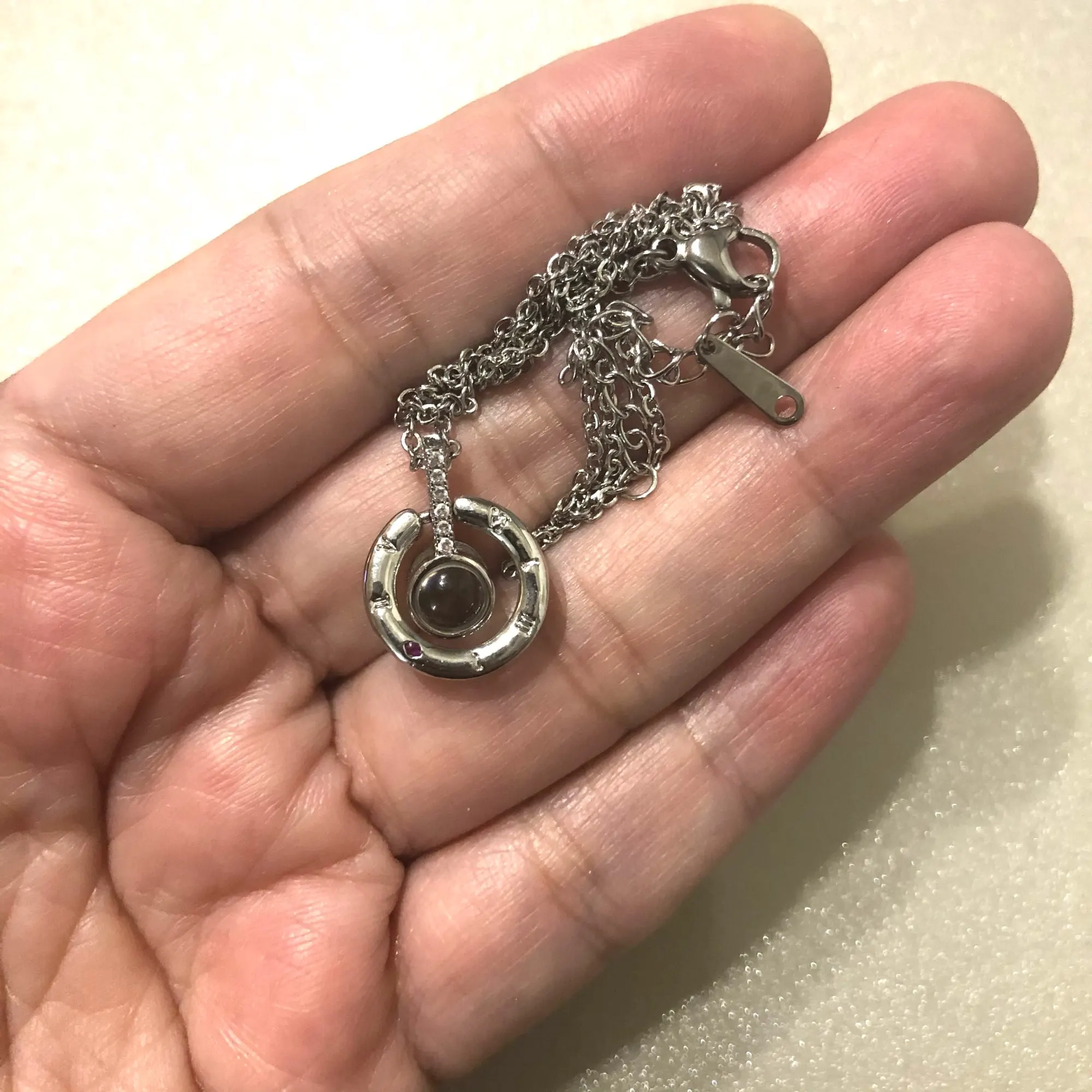 Looks very worthy, very good quality processing. In the directed light through the stones are really visible inscriptions and hearts. I hope that when worn, it will not change